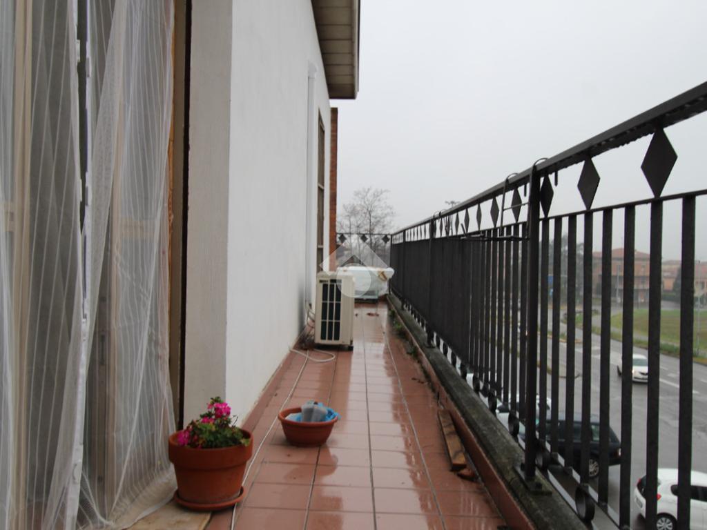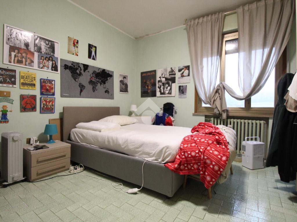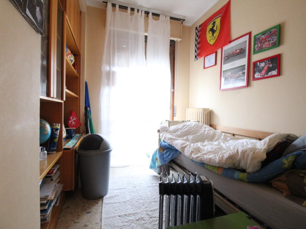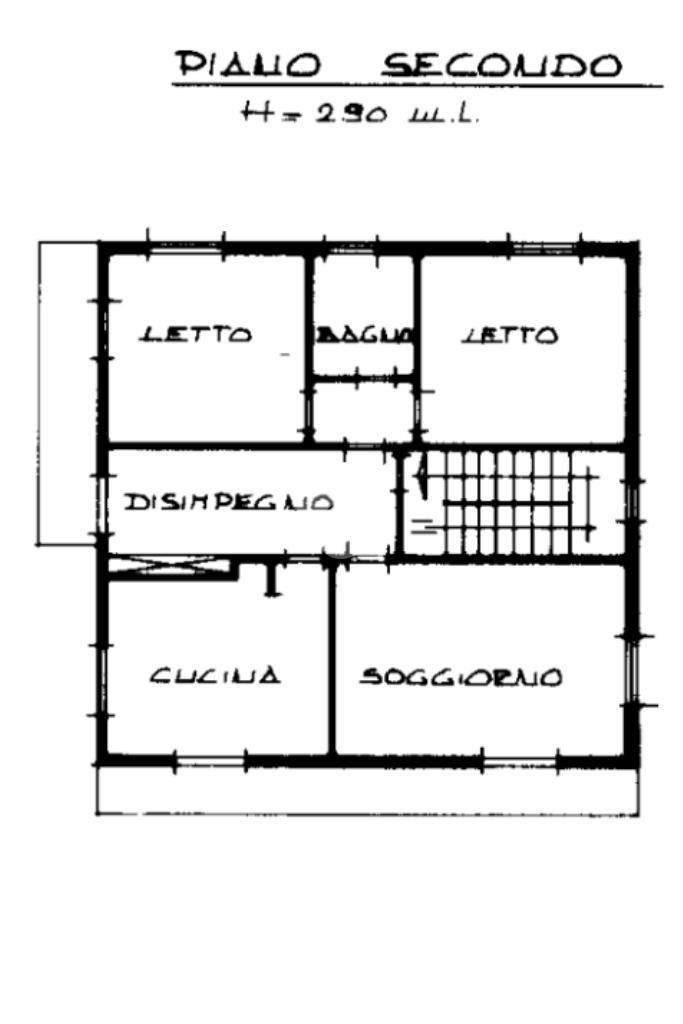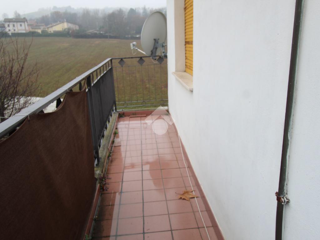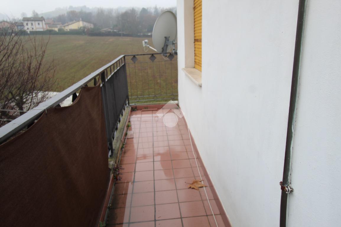 DINAZZANO: All' interno di una casa singola con due unità abitative e negozio, appartamento al piano secondo con ingresso indipendente e scala di accesso privata. Composto da: ampio ingresso con suddivisione in legno per studio/cameretta, soggiorno, cucina abitabile, due camere doppie e bagno. Due balconi uno sulla zona giorno e l' altro sulla zona notte. Dalla scala è possibile accedere al sottotetto tramite botola con scala retrattile. Garage privato in corpo staccato, nel cortile della casa. Condizioni interne originali, abitabile, ma da sistemare. Attualmente occupato da inquilino, ma libero a Settembre 2026. Senza spesa condominiali.