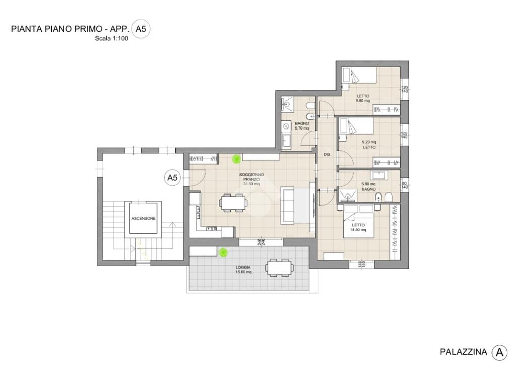 1 di 2 con ascensore (ultimo Piano)